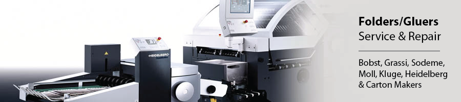 We provide repairs for a wide range of folders & gluers covering various manufacturers including Bobst, Grassi, Sodeme, Moll, Kluge & Heidelberg.